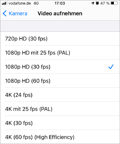 Abb. 2.3: IPHONE SE – Videoparameter