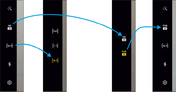 Das Umschalten der Bildformate und der Auflösung ist direkt in der Kamera-App möglich.