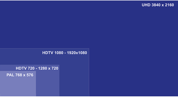 Abb. 2.2: Bildformat – Bildauflösung: von PAL-4.3 bis UHD-16:9