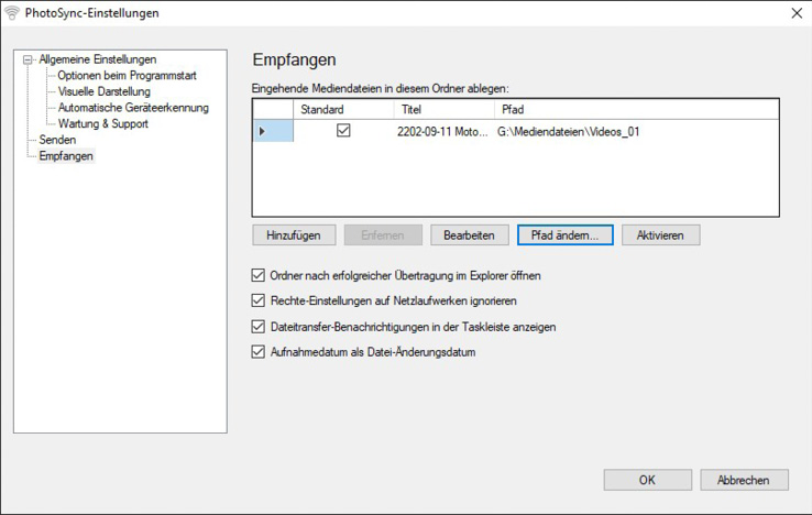 Abb. 5.1: Photosync – Zielverzeichnises am Computer einstellen