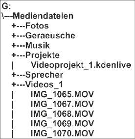 • Mediendateien, die bereits im Videoprojekt verwendet wurden, dürfen auf keinen Fall in ein anderes Verzeichnis oder gar auf eine andere Festplatte verschoben werden. Bei einem unvermeidbaren Festplattenwechsel ist die Ordnerstruktur der alten Festplatte wieder herzustellen.