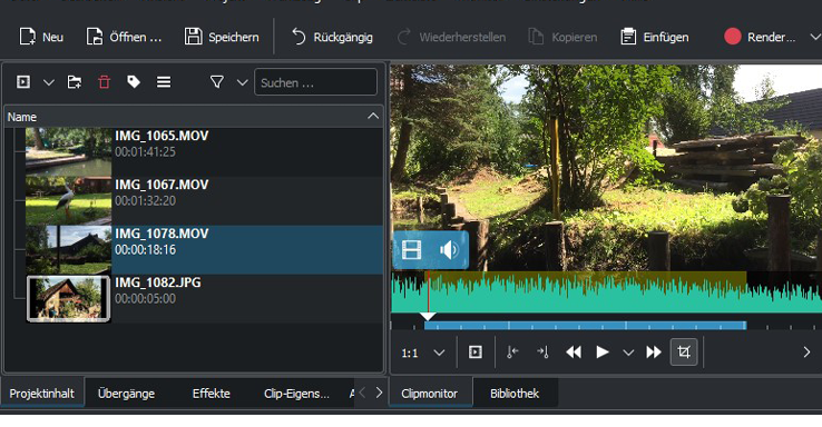 Es ist wenig überraschend, dass bei Fotos die Audiospur fehlt und zu Audiodaten keine Bilder gehören. Beim Insert solcher Mediendateien muss Audio- oder Bildspur nachträglich ergänzt werden, falls Bild- oder Tonlöcher unerwünscht sind.