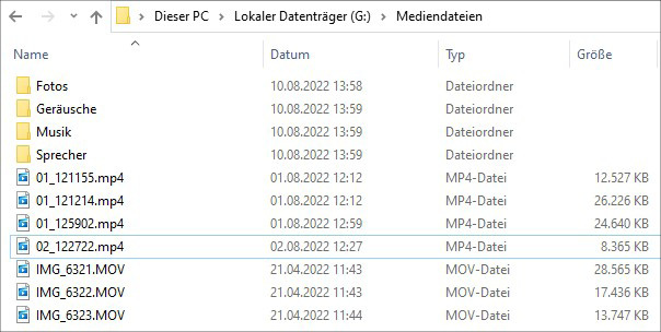 Abb. 6.1: Medienverzeichnis – hier werden Video- und Audiodateien gespeichert.