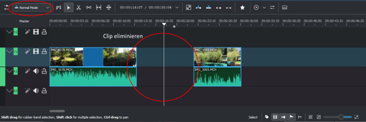 Abb. 6.32: Eliminieren – Clip durch Anklicken markieren.