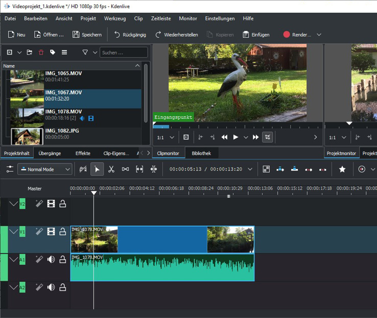 Für diesen, aber auch für größere Störfälle ist Kdenlive mit einem leistungsstarken Reparaturwerkzeug ausgestattet.