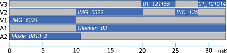 Abb. 6.3: Timeline – Videos und Bild sowie Musik und Geräusche eingefügt