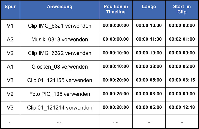 Wie erwähnt, ändert sich durch die Arbeit in der Timeline an den Mediendateien nichts. Wie aber »merkt« sich das Schnittprogramm, welche Teile einer Einstellung du verwenden möchtest und wann sie im Video zu sehen sind, welche Musik erklingt, wann sie beendet ist und an welcher Stelle die Glocken zu hören sind?