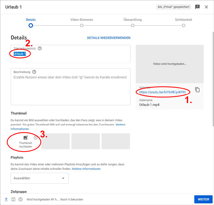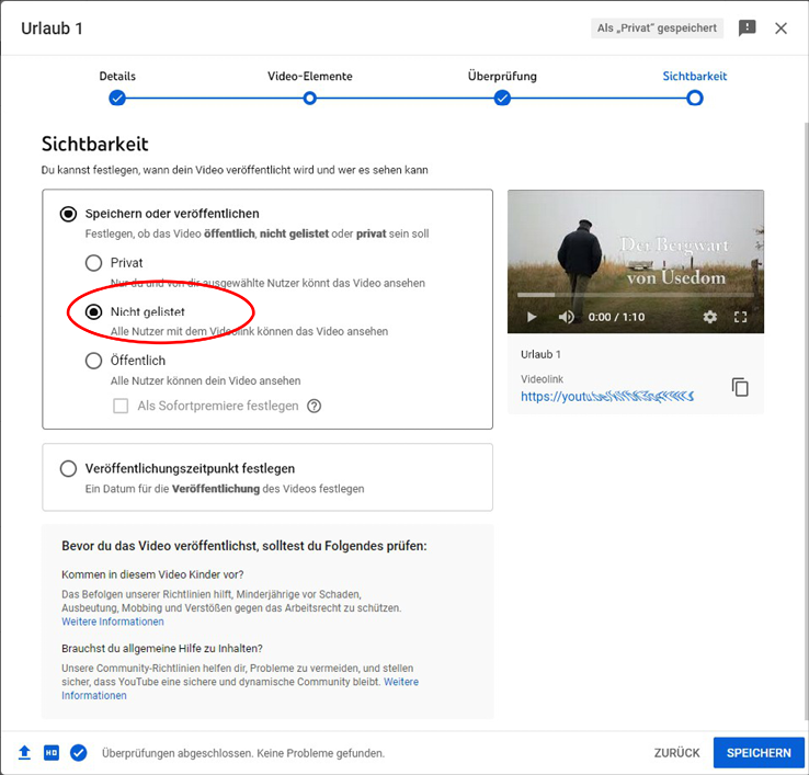 Über die Einstellung der Sichtbarkeit kannst du die Abrufbarkeit deines Videos steuern:
